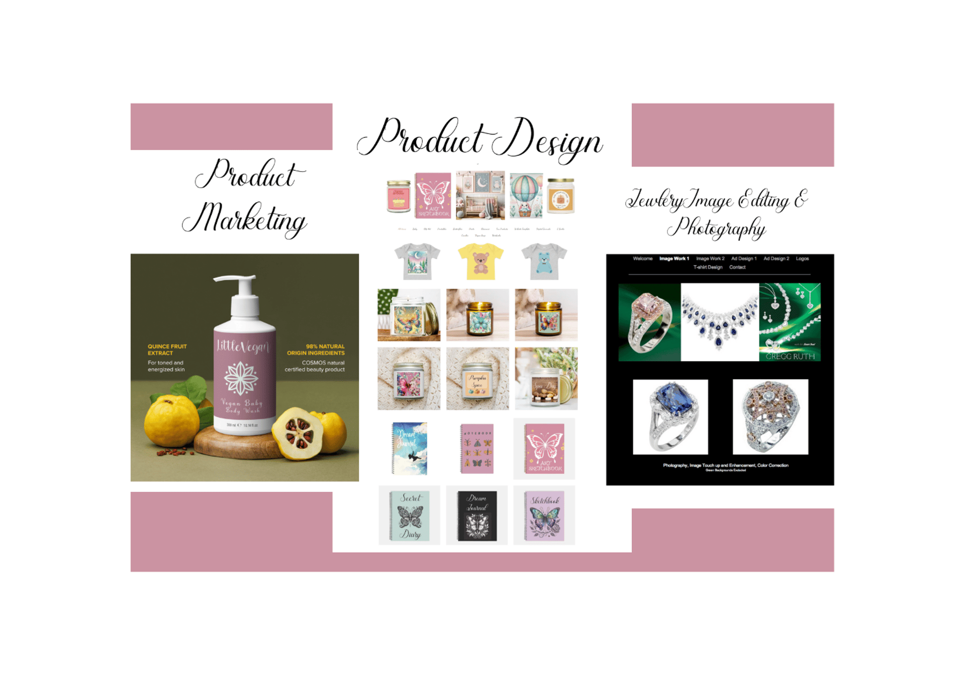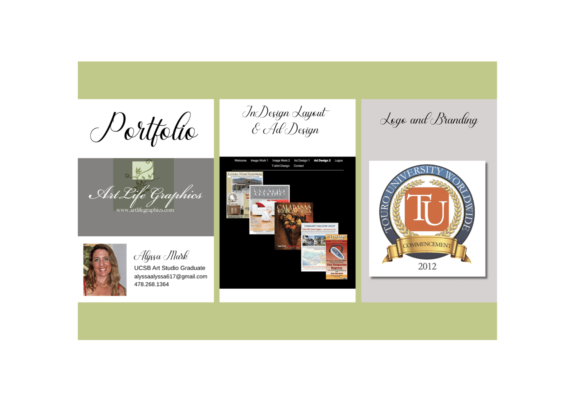 As a Graphic Designer with a Bachelor’s degree from UC Santa Barbara, I specialize in Digital Marketing Coordination, Production Design, Web and Print Graphics including designing marketing campaigns, AI generation, publishing, editing and production, e-mail marketing, brochures and catalogs, print advertising, photo editing, e-commerce/online stores--website design and maintenance.